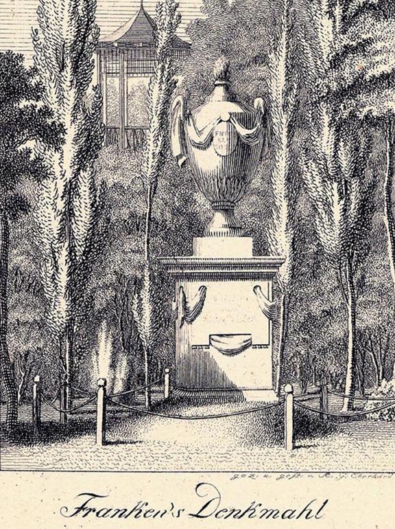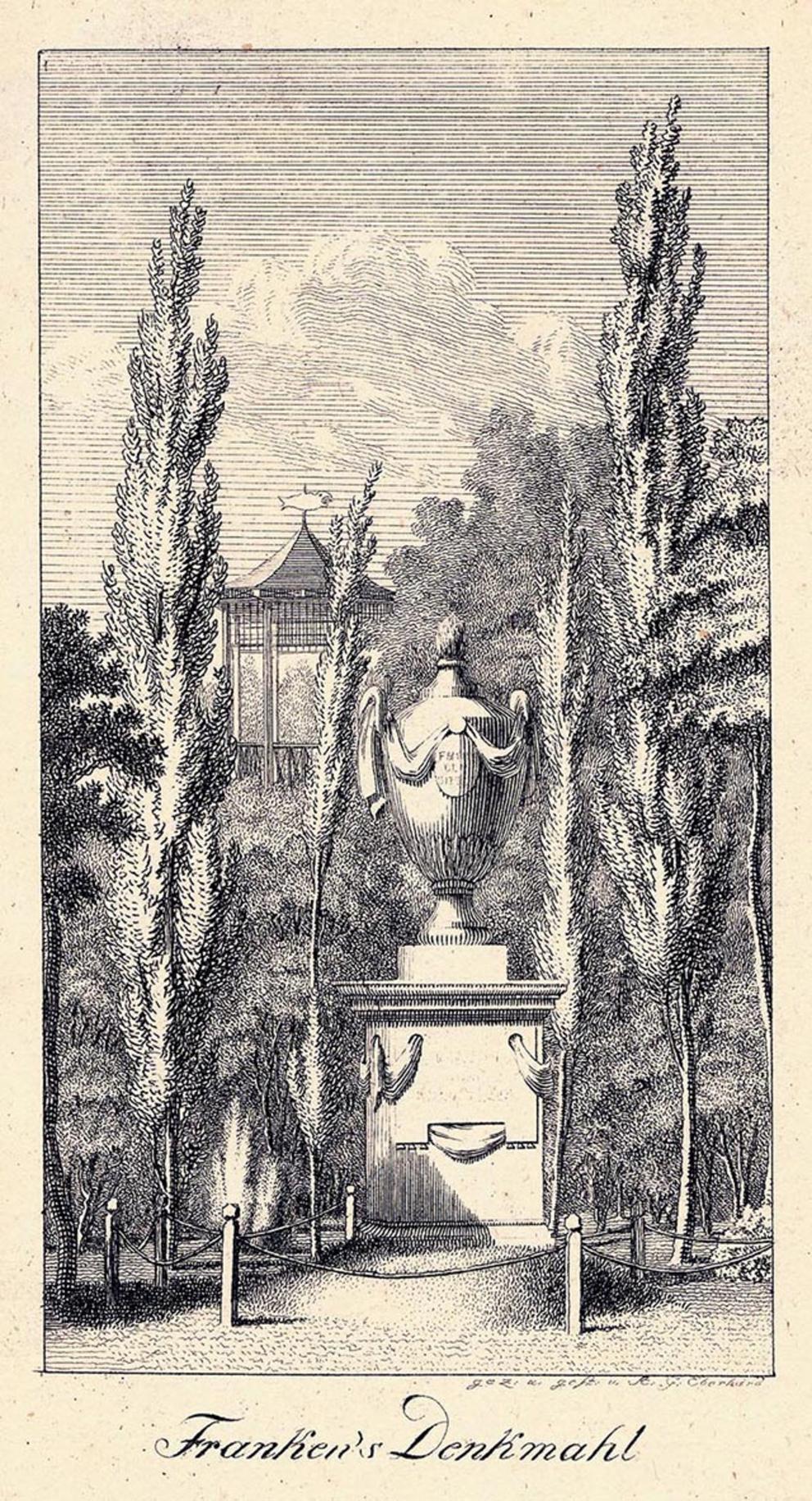 An der Ostseite des Ballonplatzes oberhalb des Botanischen Gartens des Pädagogiums hatte man 1788 ein Denkmal für den Stiftungsgründer August Hermann Francke in Form einer Gedenkurne errichtet. Um 1800 erblickte man hinter dem Denkmal die oberhalb gelegene kleine englische Gartenanlage des Pädagogiums mit ihrem Pavillon am höchsten Punkt.